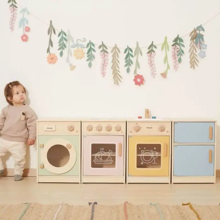 Cucina colorata per piccoli chef è il perfetto angolo di gioco per i bambini più piccoli, dove l'immaginazione prende vita! Questo set completo include un forno, un frigorifero, un lavabo e una lavatrice, tutti progettati in colori vivaci e accattivanti per stimolare la creatività dei piccoli chef. Realizzata con materiali resistenti e sicuri, questa cucina offre un'esperienza di gioco realistica, permettendo ai bambini di esplorare le dinamiche domestiche in un ambiente divertente.