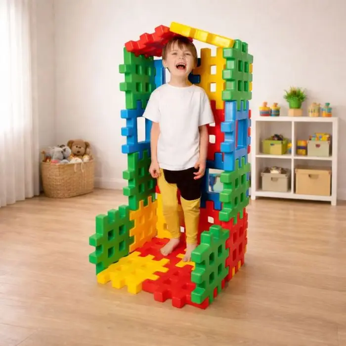 L'elemento piastrella" tipico delle costruzioni Waffle di" pag. 487 diventa gigante in questo set! I pezzi sono in robusta plastica lucida e presentano la griglia caratteristica che consente di realizzare costruzioni in 2D e 3D, grazie a un semplice sistema a incastro. Le dimensioni enorme di questi elementi permettono di realizzare costruzioni colossali!