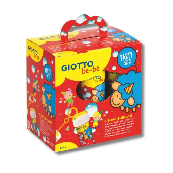 Giotto Party Gifts - Bolle Di Sapone è il kit perfetto per aggiungere magia, leggerezza e risate a ogni festa dei bambini! La confezione contiene 6 flaconi da 60 ml...