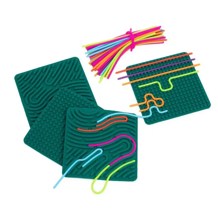 Una fantastica tavola sensoriale in silicone progettata per stimolare il tatto, la vista e la creatività dei più piccoli. Con 4 basi e 72 fili colorati, questo prodotto è perfetto per alleviare lo stress e migliorare la concentrazione. Le dimensioni ottimali di ogni base rendono il quadrato sensoriale un ausilio versatile e pratico per i bambini, favorendo lo sviluppo cognitivo e il benessere.