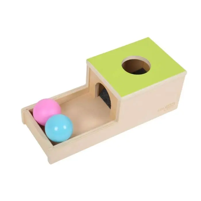 La Scatola della permanenza Montessori invita i più piccoli a lasciar cadere la pallina nell’apertura verde, seguirla con lo sguardo mentre scompare, quindi ritrovarla nel vano laterale: un’azione semplice che trasforma il gioco in scoperta. Manipolando la scatola della permanenza Montessori, il bambino sviluppa la coordinazione occhio‑mano e la motricità fine, ma soprattutto consolida il concetto di oggetto permanente, cardine del metodo Montessori. L’inclinazione interna fa rotolare dolcemente la pallina fino all’uscita, premiando la curiosità con un feedback visivo e tattile.